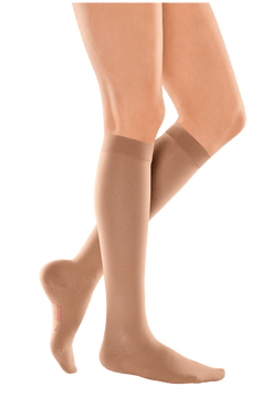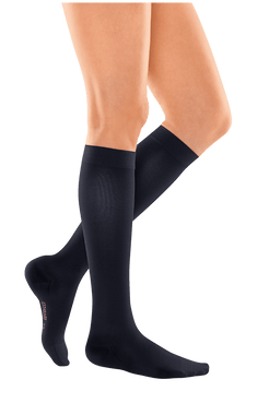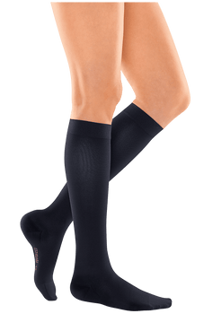 تم تطوير جورب الركبة Mediven® Travel Women AD خصيصًا للنساء اللاتي يحتجن إلى ضغط خفيف ومريح أثناء السفر. يدعم الجورب تدفق الدم الوريدي أثناء الجلوس أو الوقوف لفترات طويلة، ويقلل من خطر المشاكل المرتبطة بالسفر، ويساعد في الوقاية من الأرجل المتعبة والثقيلة. المظهر نصف الشفاف يجعل هذا الجورب للسفر عمليًا وأنيقًا في آن واحد.