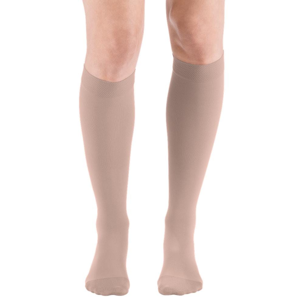 The Mediven® Comfort AD knee sock is available in various natural colors. The design is anatomically shaped and fits nicely around the ankle, foot, and calf. The soft cuffs ensure that the sock stays firmly in place without pinching or causing marks.