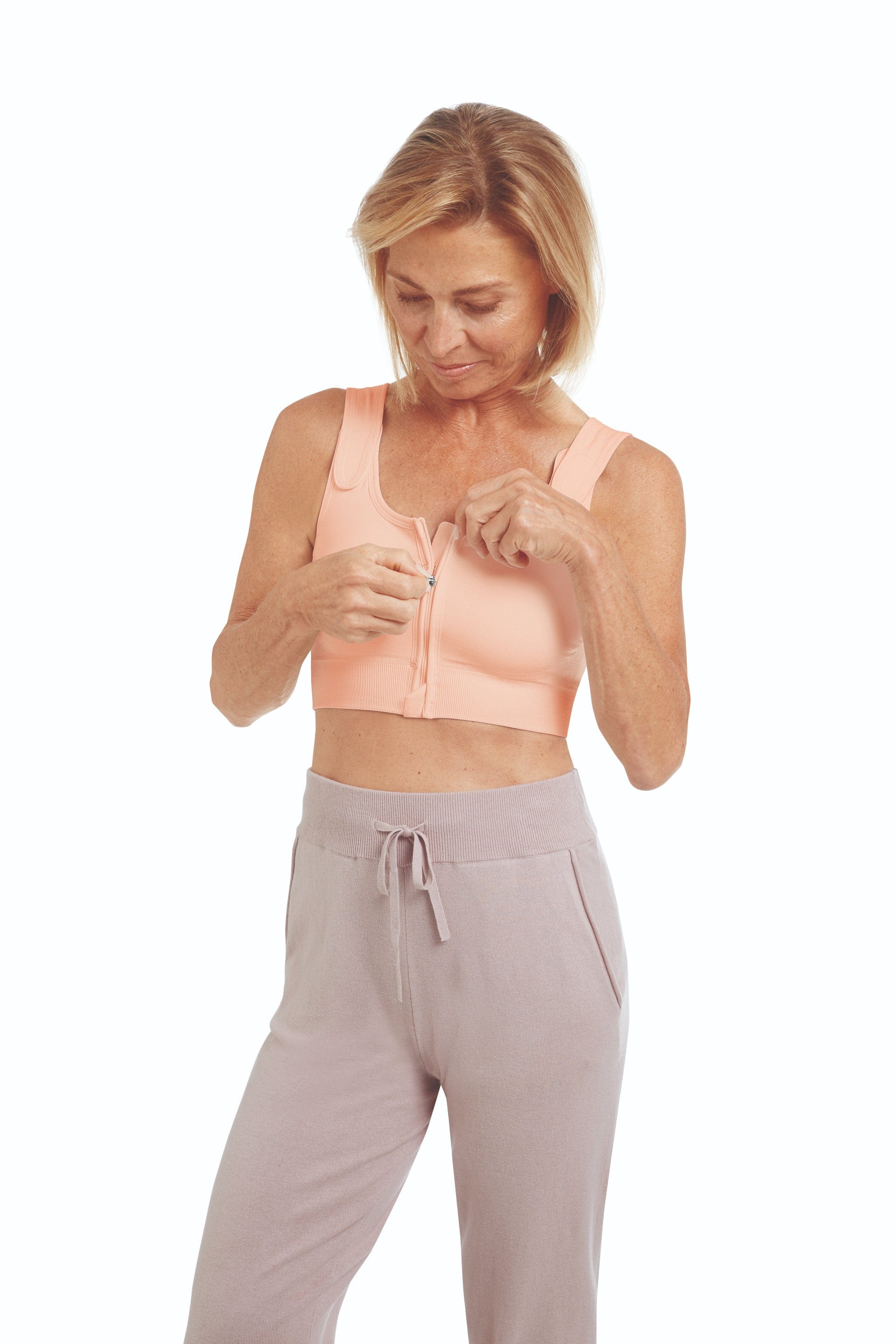 The Amoena Pamela compression bra is specially developed for the first phase of postoperative care, immediately after breast reconstruction, breast reduction, breast augmentation, breast lift, oncoplastic breast surgery, or mastectomy. This bra combines medical functionality with maximum comfort and supports a smooth recovery.