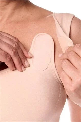 The Amoena Sina compression bra is pre-washed and ready for clinical use. The design with seamless technology and targeted knitting technique offers even, medical-grade medium-level compression. This support helps stabilize breast tissue and makes the bra ideal for use during the initial recovery period.