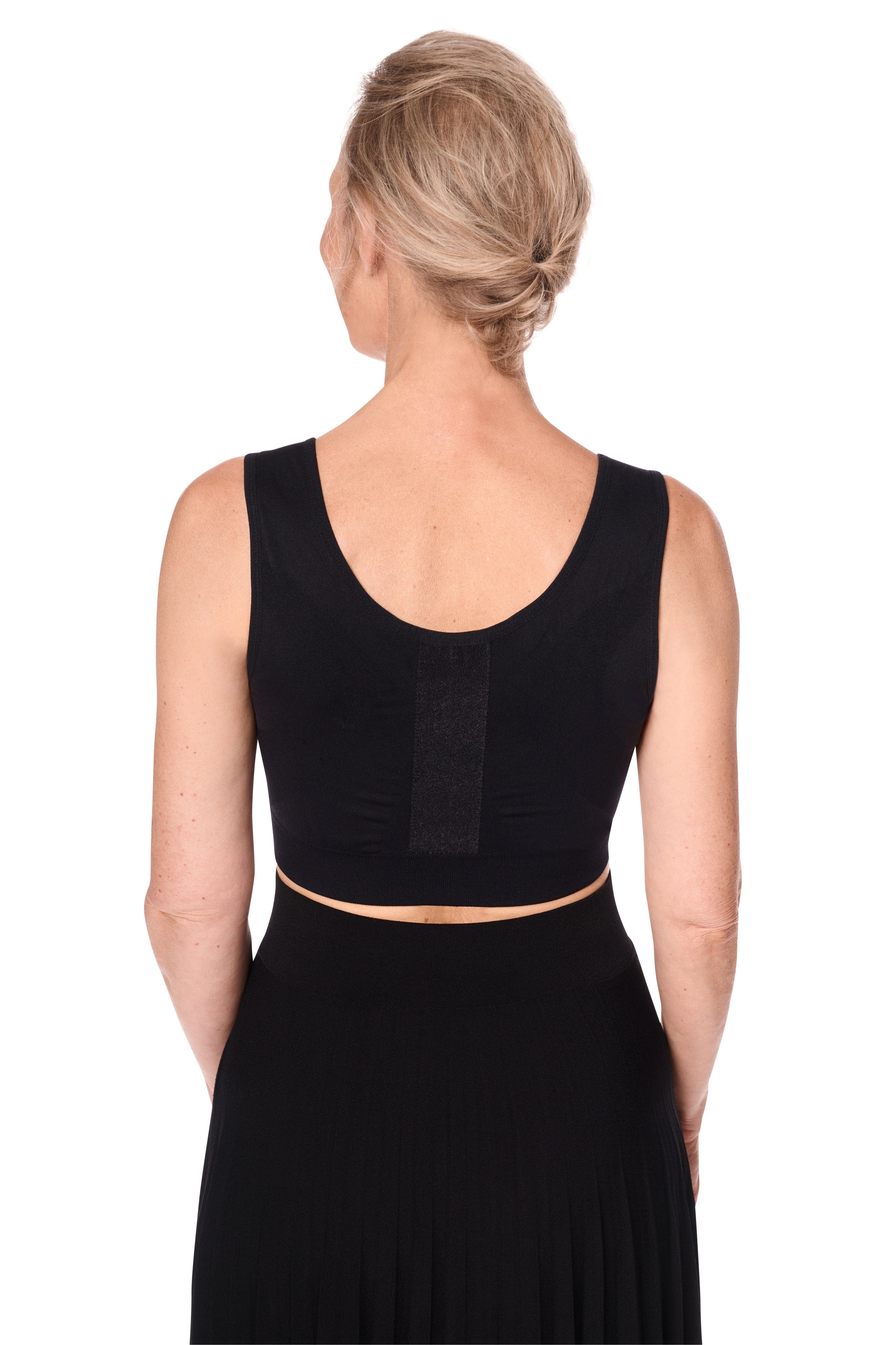 The elastic fabric prevents skin irritation and flexibly adapts to the individual shape. Both the front and back are easily accessible for medical procedures or personal care. The wide shoulder straps contribute to comfort, even during prolonged wear. The bra is free of latex, silicone, and nickel and is suitable for machine washing at 40°C. The bra is free from latex, silicone, and nickel.