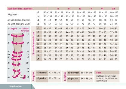 Mediven® Cotton está disponible en varias tallas. Consulte siempre la tabla de tallas para determinar la talla correcta, o haga que un profesional mida sus piernas para un ajuste óptimo.