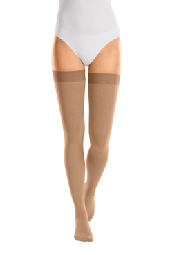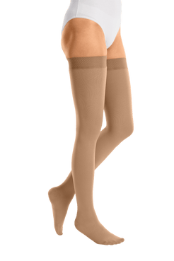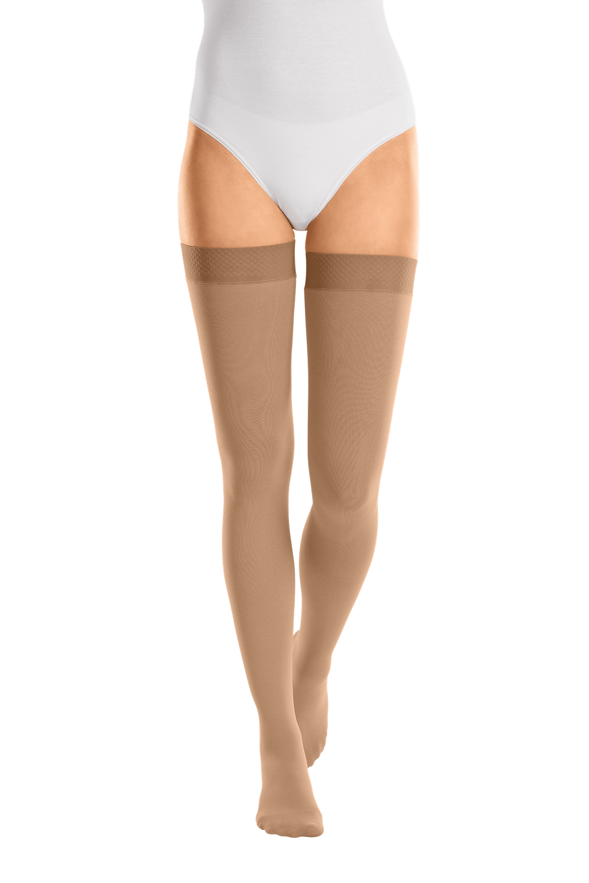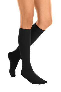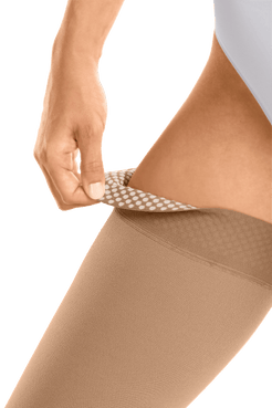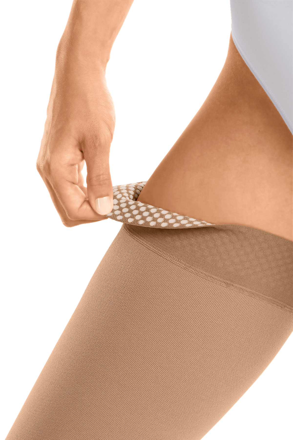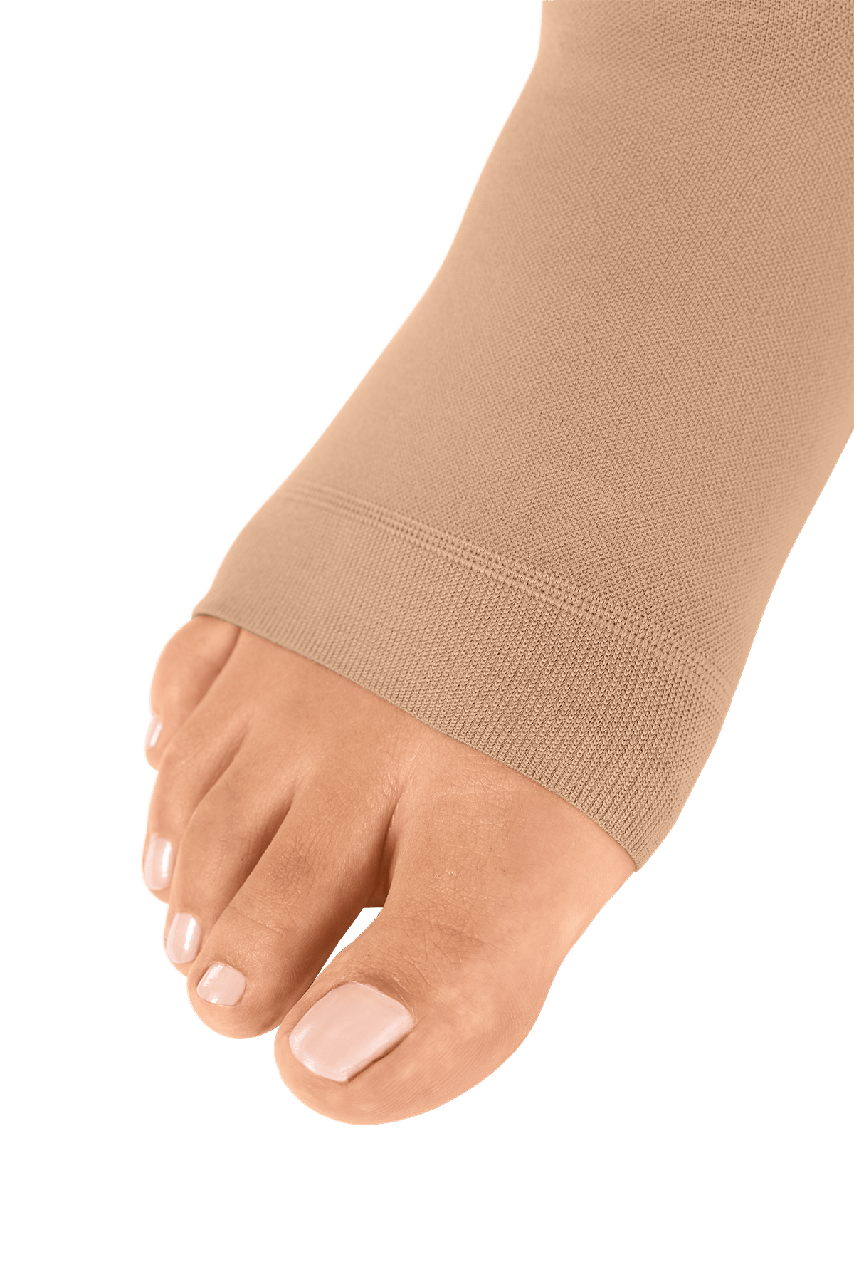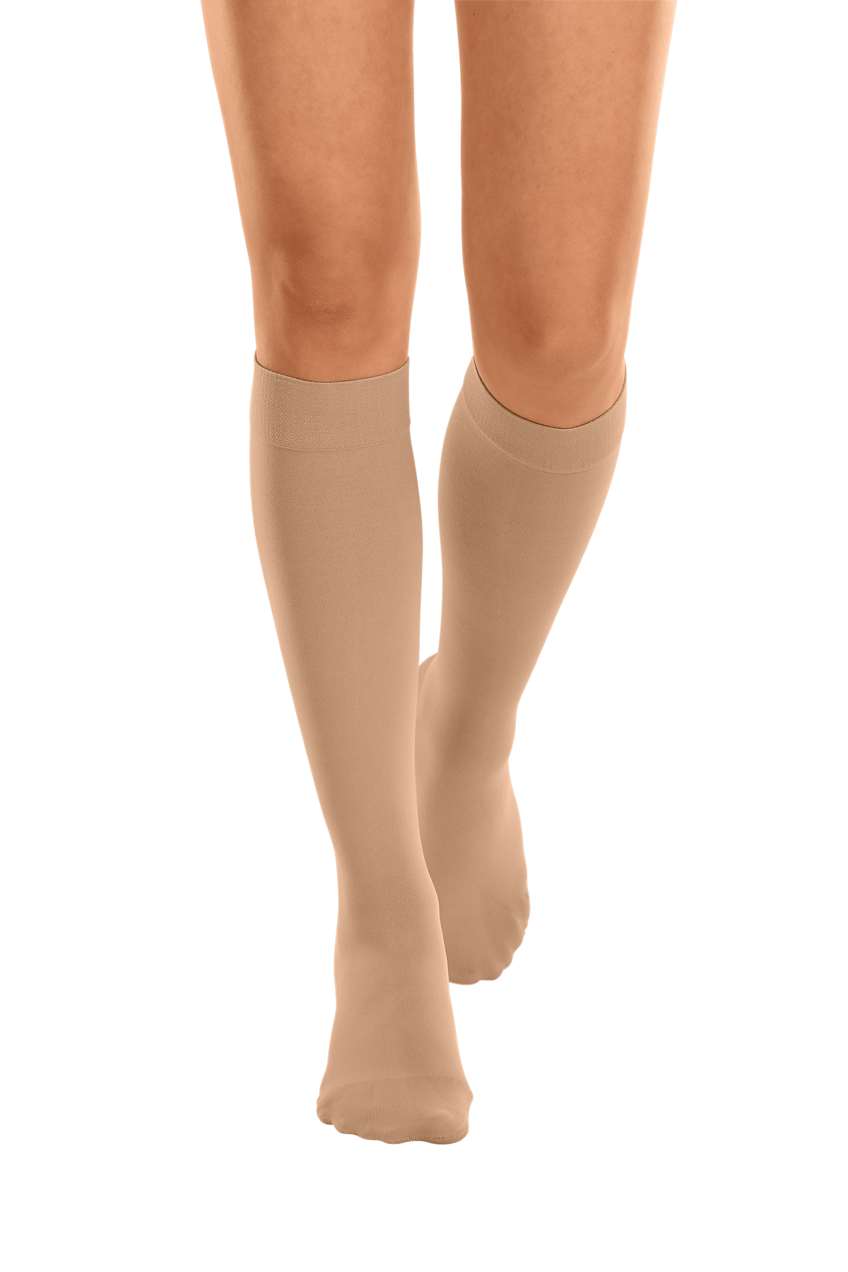 Mediven® Cotton es una media médica de compresión especialmente desarrollada para personas con piel sensible o fácilmente irritada. La media combina una compresión fiable con la comodidad del algodón biológico puro en el interior, lo que la hace especialmente suave y adecuada para el uso diario. La media apoya la circulación venosa, reduce la hinchazón y ayuda a aliviar molestias como piernas cansadas, pesadas o tensas.