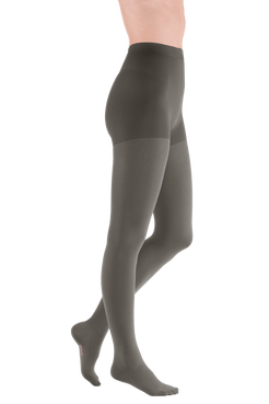 La panty Mediven® Comfort está fabricada con un material excepcionalmente suave y de punto circular que facilita ponerse y quitarse la prenda. La estructura fina es agradable al tacto y ofrece mayor comodidad al caminar y al usarla gracias a la técnica de doble tejido. La parte del pantalón (entrepierna) tiene forma anatómica y varía según la talla, desde una pieza estándar hasta un refuerzo extra ancho para mayor estabilidad. El material es transpirable, amigable con la piel y certificado según el estándar OEKO-TEX 100.