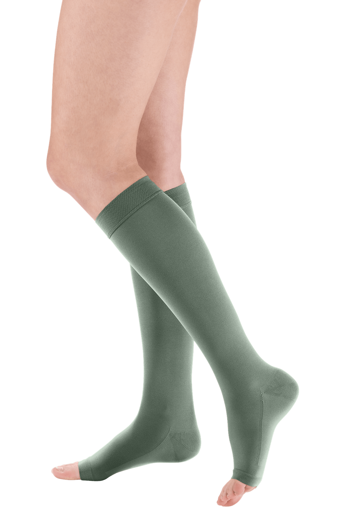De Mediven® Comfort AD kniekous in trendkleuren biedt dezelfde betrouwbare medische compressie als de standaardlijn, maar dan in moderne, stijlvolle seizoenskleuren. Deze kous ondersteunt de afvoer van vocht, helpt zwelling verminderen en verlicht klachten zoals vermoeide, zware of gespannen benen. Dankzij het zachte, comfortabele materiaal en de modieuze kleuren is deze variant ideaal voor vrouwen die compressie willen combineren met een eigentijdse uitstraling.