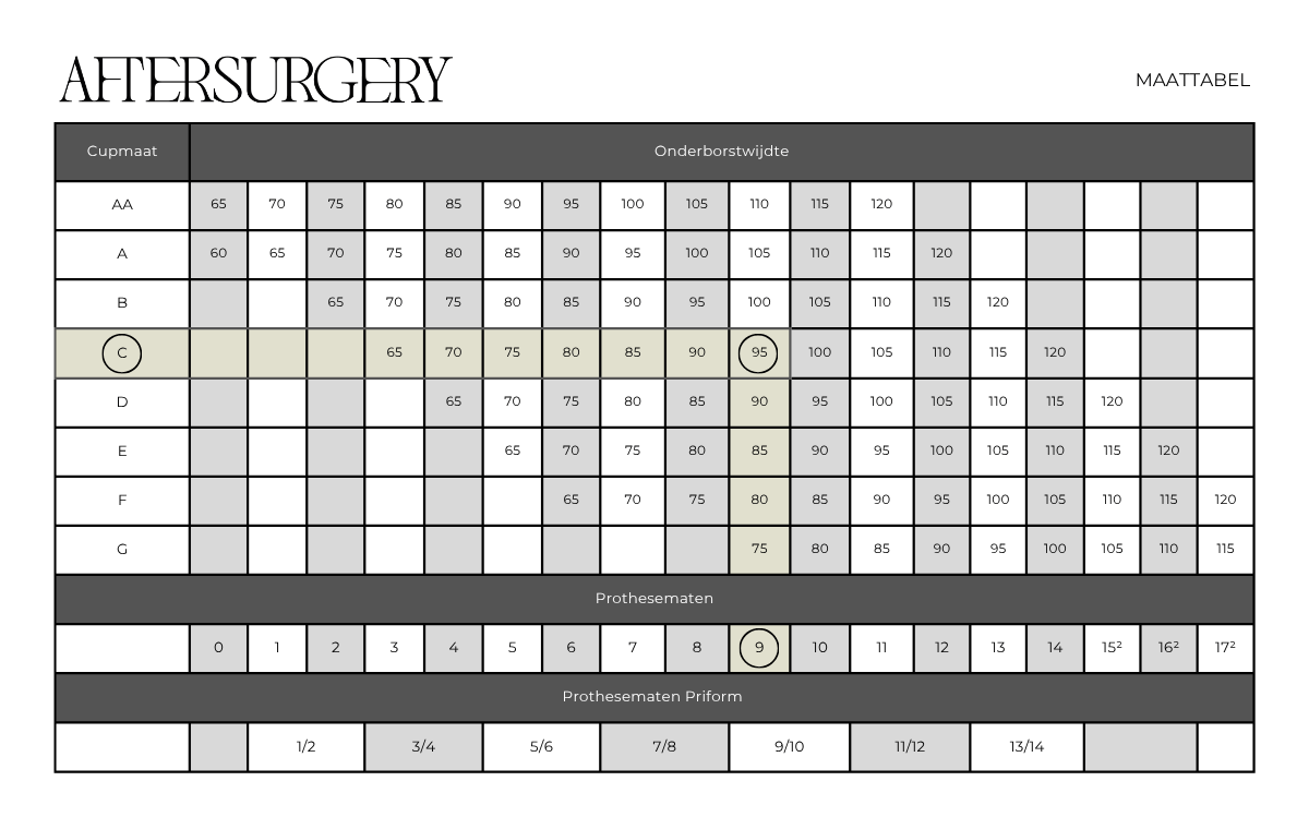 De borstprothese is beschikbaar in de maten 1/2 tot 13/14, zodat u de juiste maat kunt kiezen voor uw behoeften.